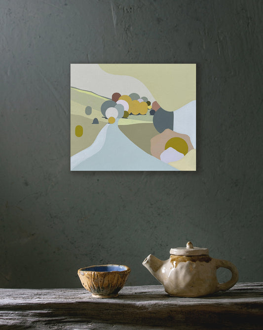 In Radiance, Clare Brodie explores the theme of connection through rhythmic geometric and lyrical landscape renderings. Soft light bathes each composition and envelopes the viewer in a warm glow while floating translucent circles invite close observation and reflection of the relationship